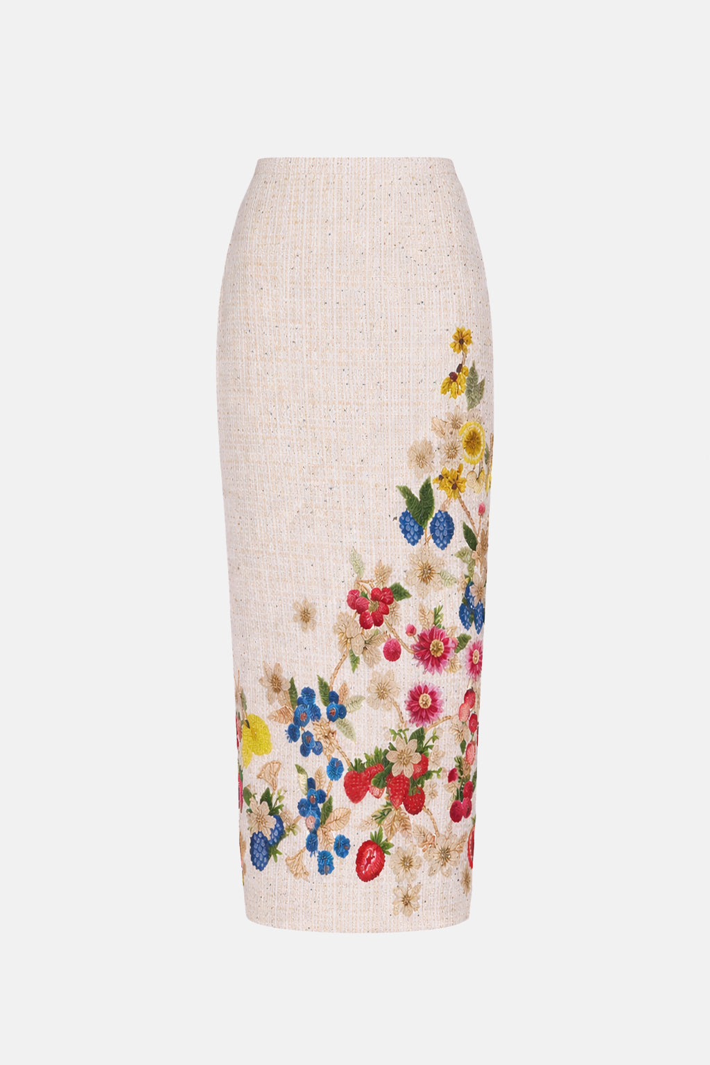 The Vargas Skirt in Fruitavola is a sleek and sophisticated midi skirt, designed to flatter the figure with its body-hugging fit. This tweed skirt features a subtle low-back slit, this elegant piece offers both style and ease of movement. Perfectly paired with the matching Juda Top, it creates a chic coordinated look ideal for both daytime events and evening soirées.
