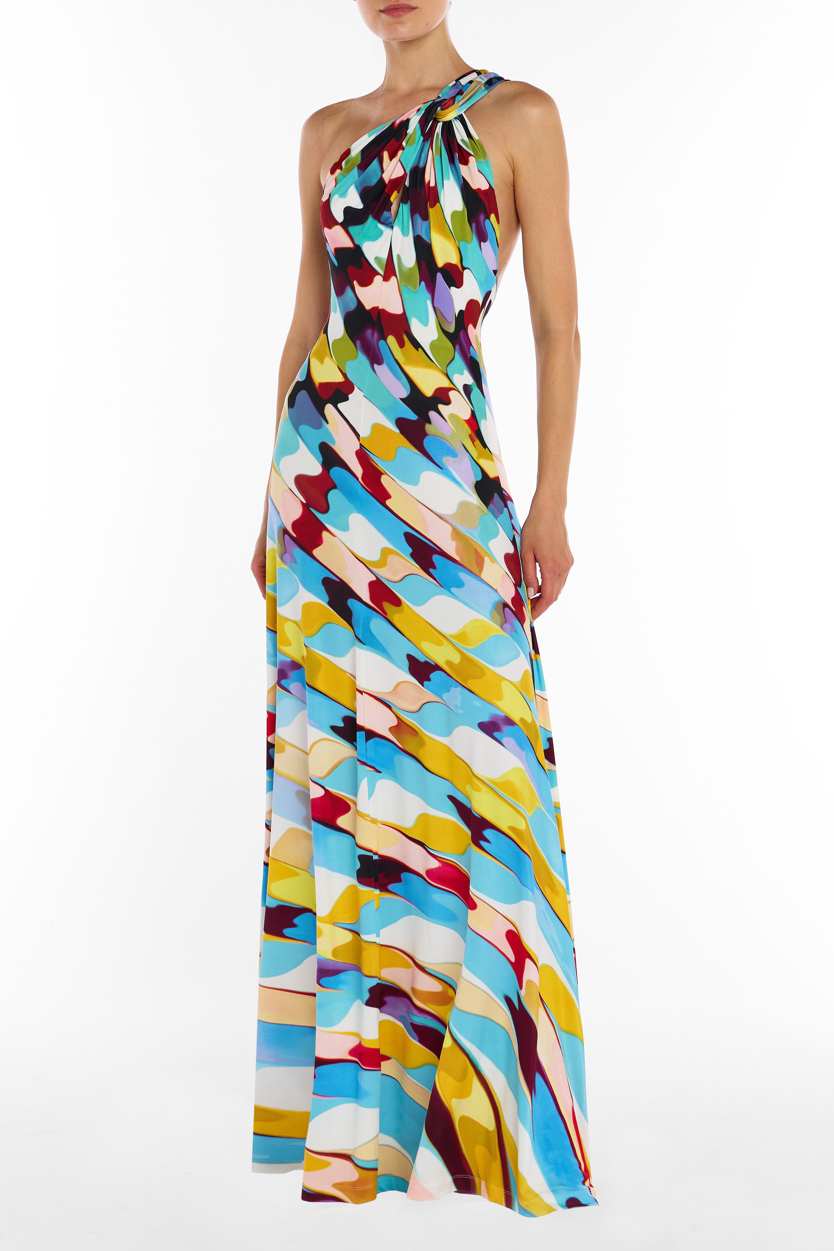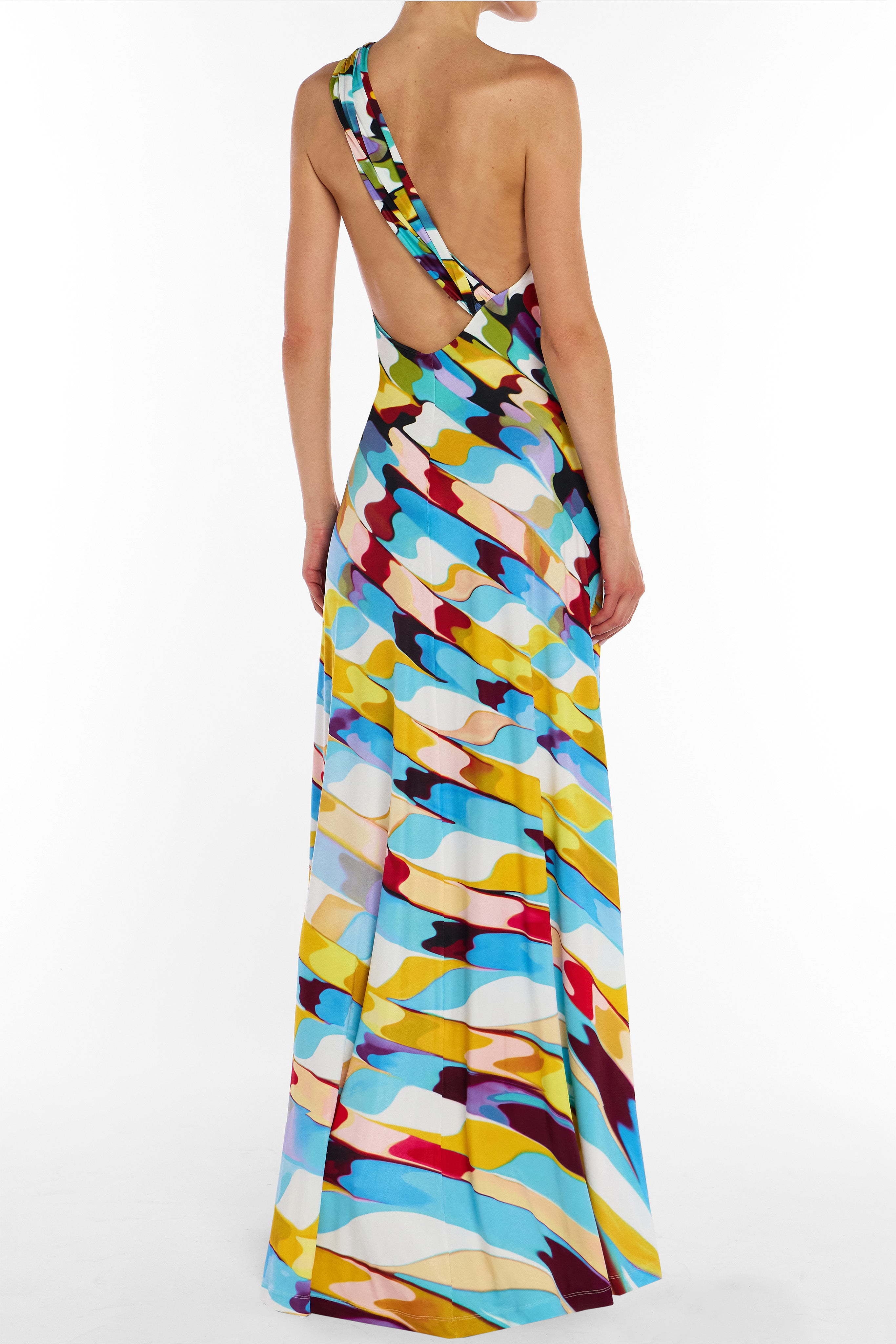 The Fabray dress in Reticello Primrose is a flowing maxi silhouette crafted in soft jersey for effortless elegance and comfort. Designed with an asymmetric one-shoulder neckline and an open back, it creates a sculptural yet fluid shape that moves beautifully with the body. Refined and striking, it’s an elevated statement piece perfect for evening occasions and summer events.