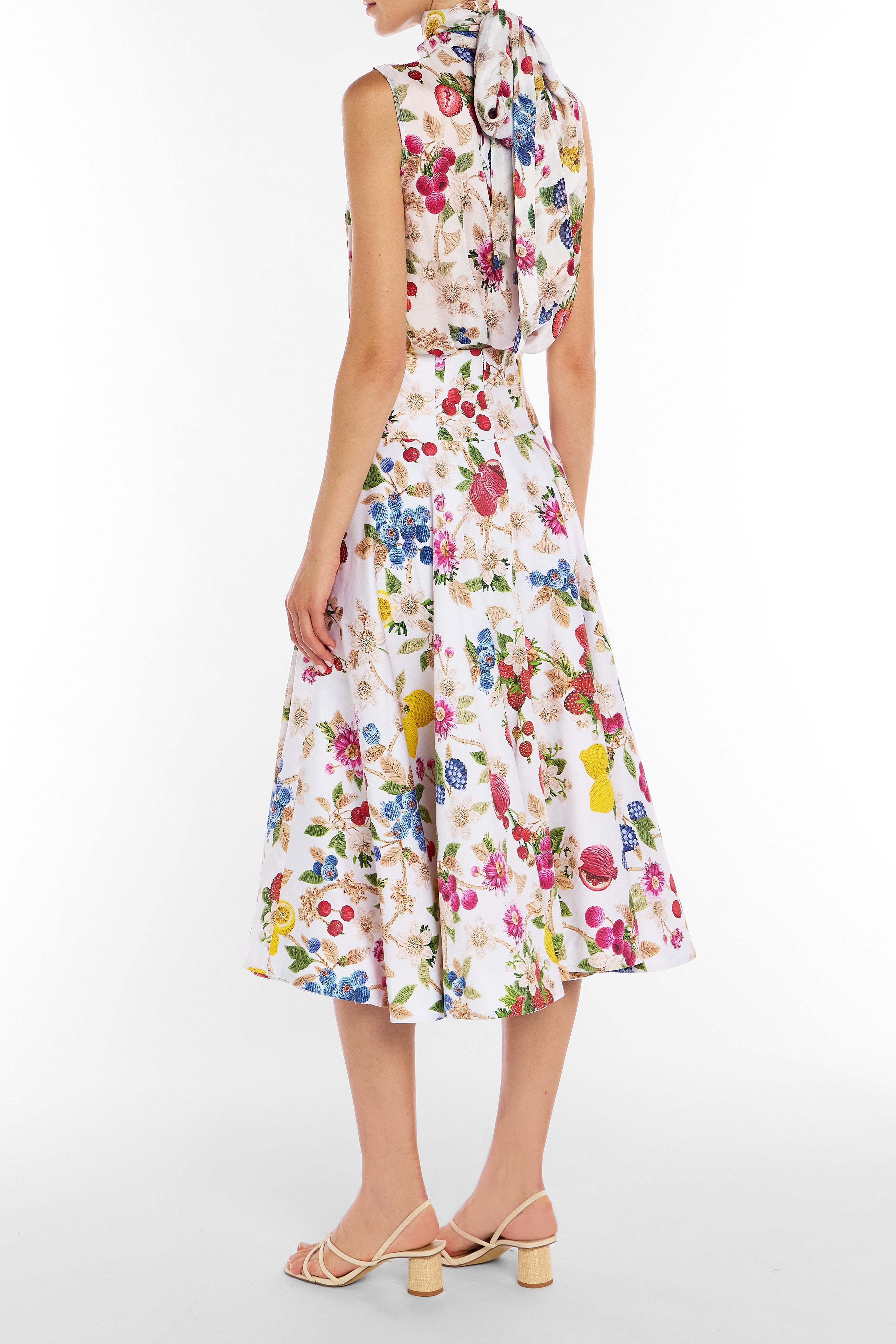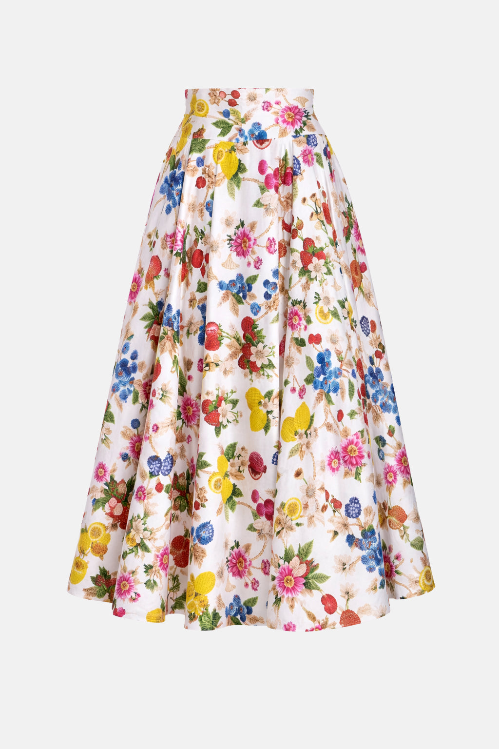 The Stowe Skirt in Fruitavola is a voluminous midi skirt crafted with a high waist and a dramatically flared silhouette. Its sculptural cut creates graceful movement, while the precise tailoring ensures a flattering fit that accentuates the waist. Perfect when styled with the coordinating Vita Blouse or as a standalone statement, the Stowe Skirt embodies timeless elegance with a bold, modern edge, making it ideal for both day events and evening occasions.